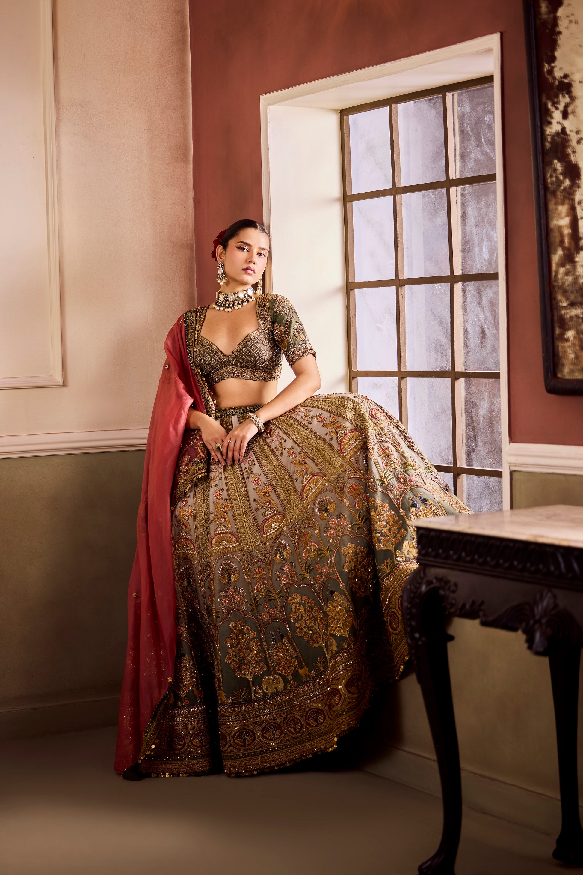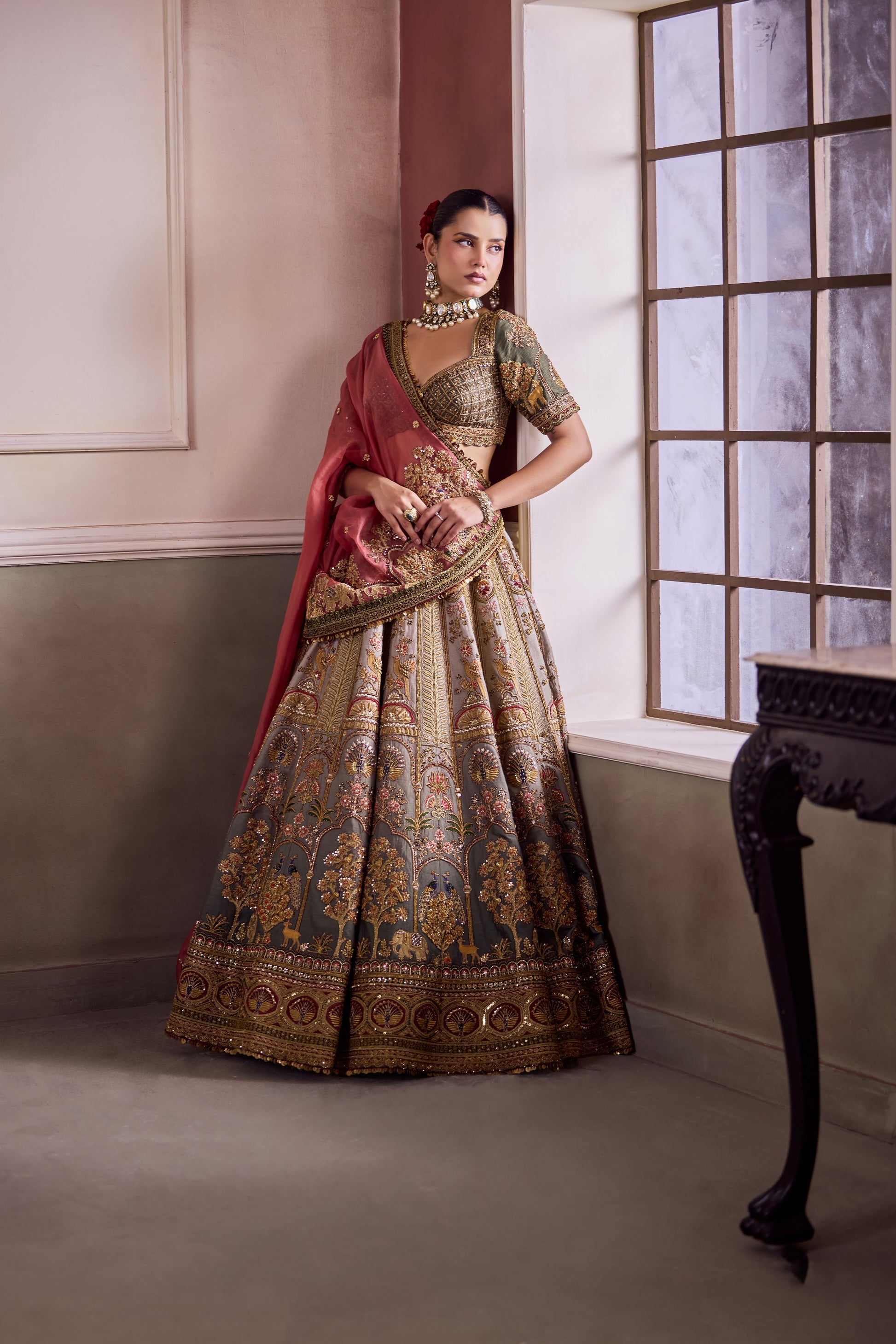 - Fabric : LEHENGA- RAW SILK BLOUSE- RAW SILK DUPATTA- ORGANZA VEIL- NET